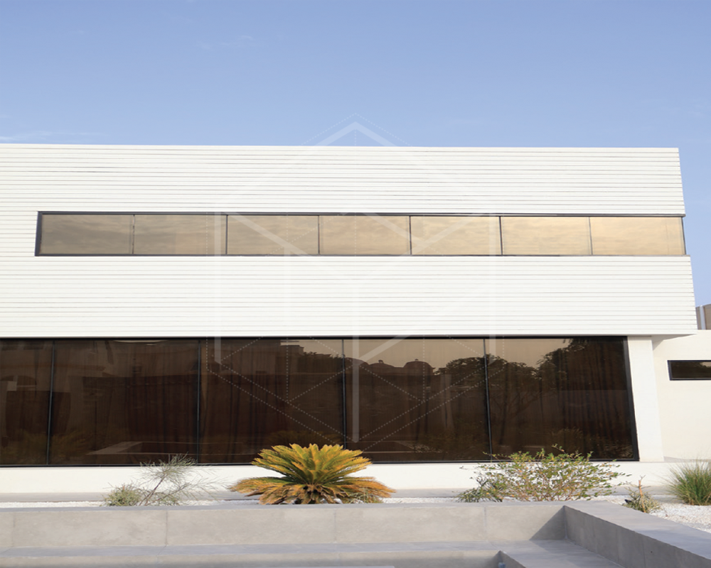 A prestigious private villa project. The awarded scope included glass and aluminum works, fixed curtain walls, sliding door, fixed decorative louvers and pivot doors.
